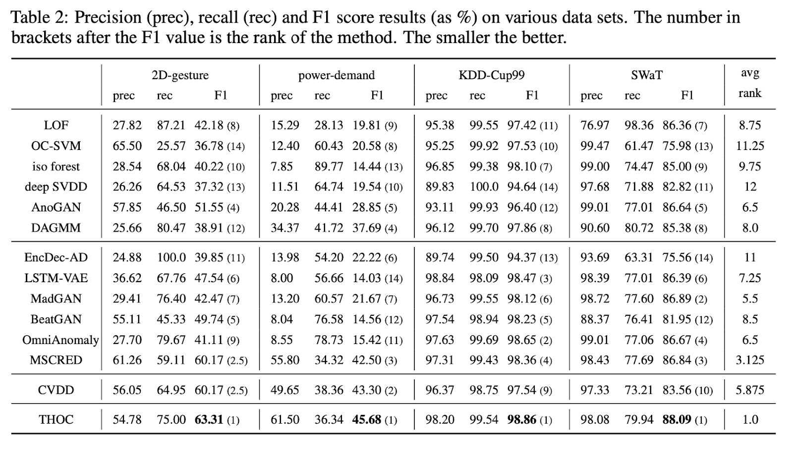 - 아래 figure 2에서 다른 data set을 사용해보아도 THOC의 F1 score가 가장 높을 걸 볼 수 있다.